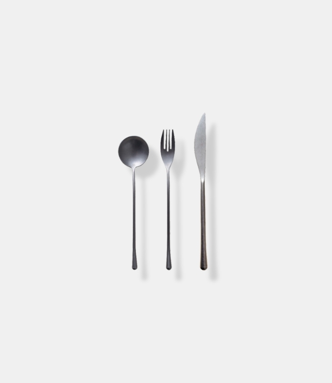 質樸的美式鄉村風餐具,材質採用低調的霧面不鏽鋼,呈現雪花銀質地;弧線設計使餐具更顯簡約優美,搭配餐桌擺飾時能給予視覺重量卻又不搶走食物與器皿的焦點,能絕佳的平衡視覺美感。