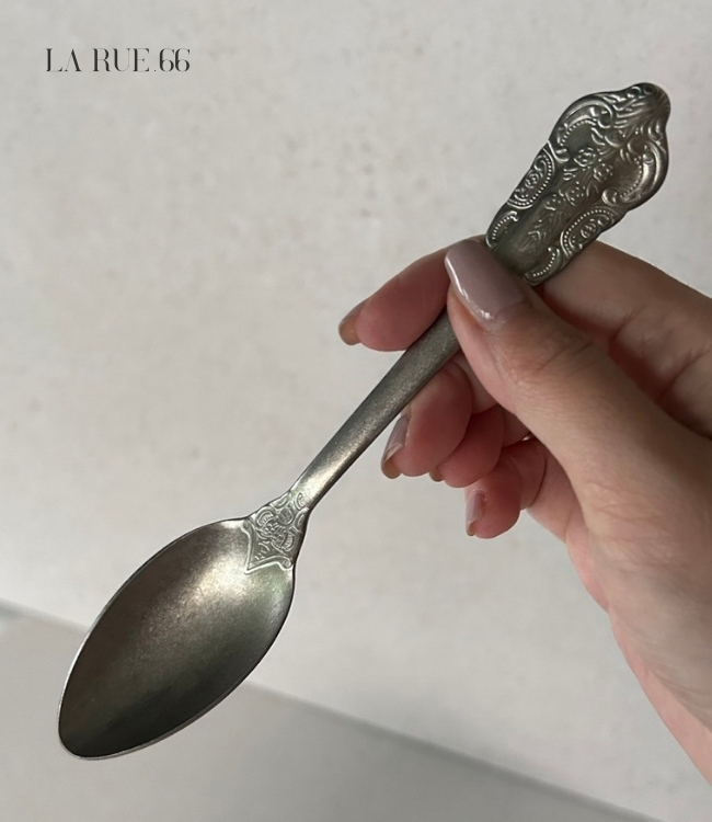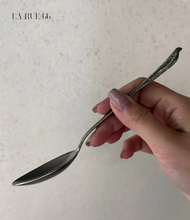 復古工藝美式餐具,材質採用低調的霧面不鏽鋼,呈現雪花銀質地;雅緻的裝飾環狀設計,使餐具樸實而典雅,搭配餐桌擺飾時能給予視覺重量卻又不搶走食物與器皿的焦點,能絕佳的平衡視覺美感。