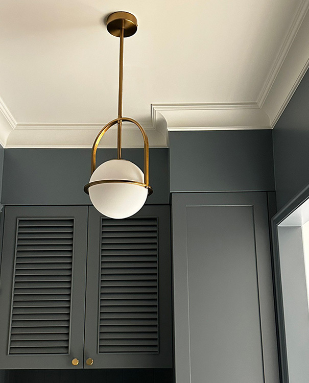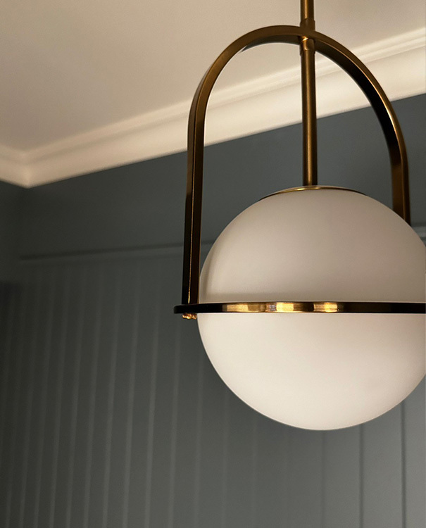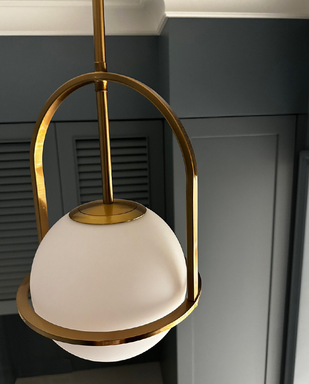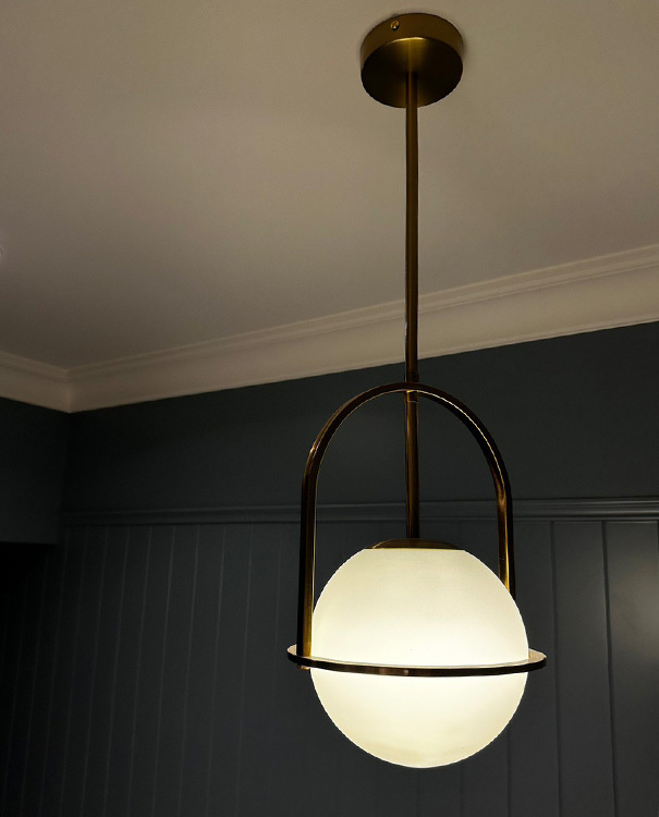 · 雅緻金屬架構內鑲嵌著蛋白石玻璃球,經典的設計提升空間的美感。