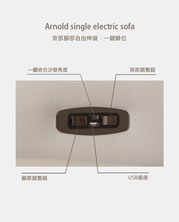 · 加強頭頸肩支撐設計,包覆身形,手動調整沙發頭部角度,讓坐臥享受更加完美