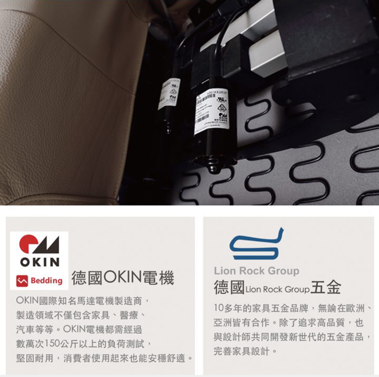 材質:義大利原裝進口牛皮 / 德國Lion RockGroup原裝五金+德國OKIN電機
