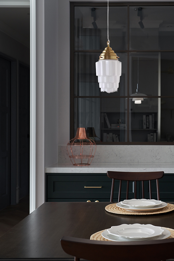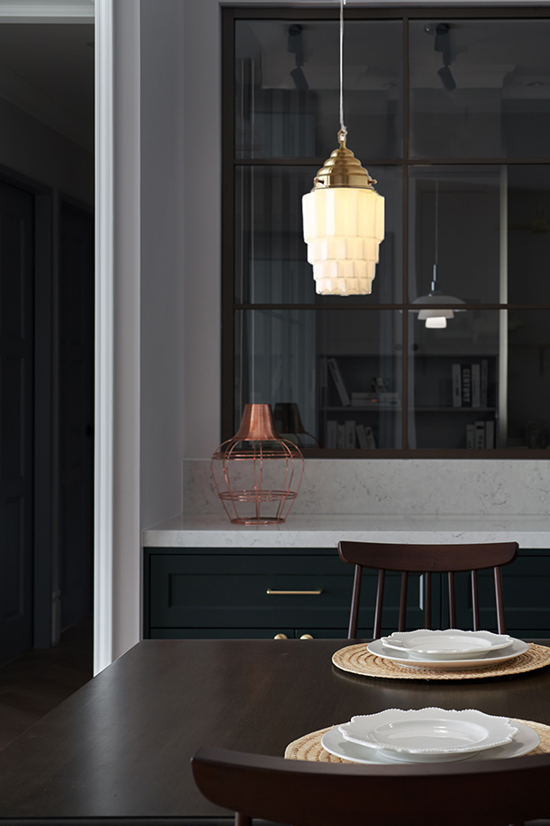 · 簡約俐落的玻璃燈罩,散發出柔和的光線
