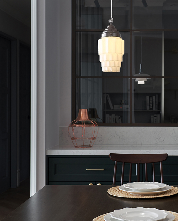 · 簡約俐落的玻璃燈罩,散發出柔和的光線