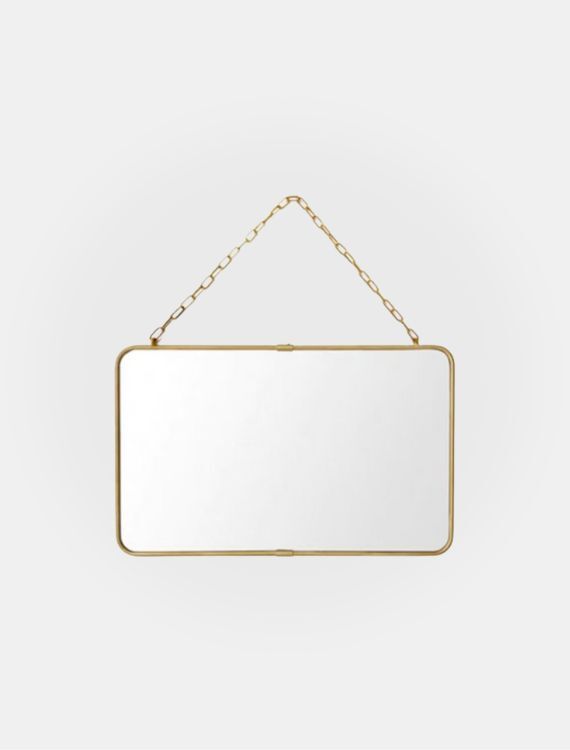 銅金色掛鍊設計,圓角造型與不鏽鋼金屬邊框,呈現柔和又精緻的復古感。具有優雅復古與實用兼備的設計,適合用於衛浴、化妝區或入口空間。