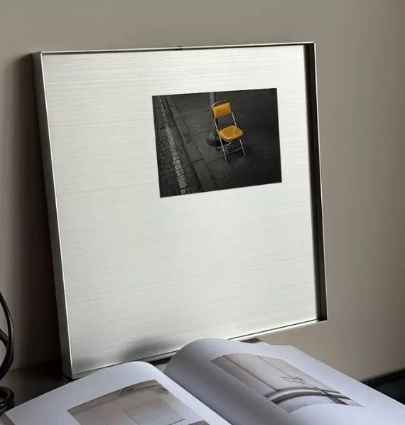 以細緻拉絲金屬呈現低調光澤,展現現代簡約的冷調質感。俐落方形比例搭配留白設計,使畫面更具聚焦效果,適合攝影作品、海報或日常影像展示。提供兩種尺寸,輕鬆融入客廳、書房或玄關空間。