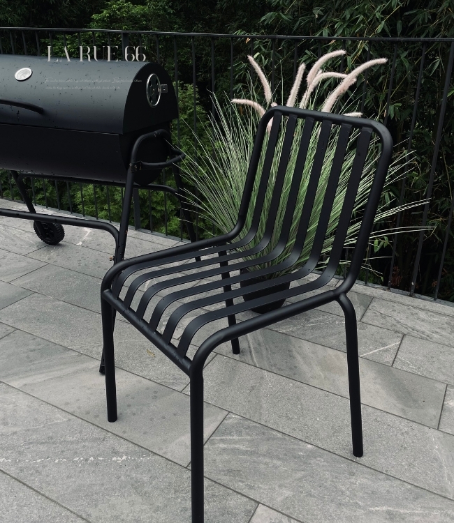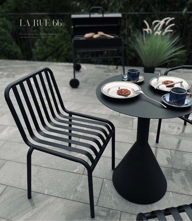 經典美式霧黑鐵椅;以符合人體工程學的流線設計,選用高品質鐵件工藝,耐腐蝕且穩固;條狀簍空的設計,讓乘坐者舒適透氣。