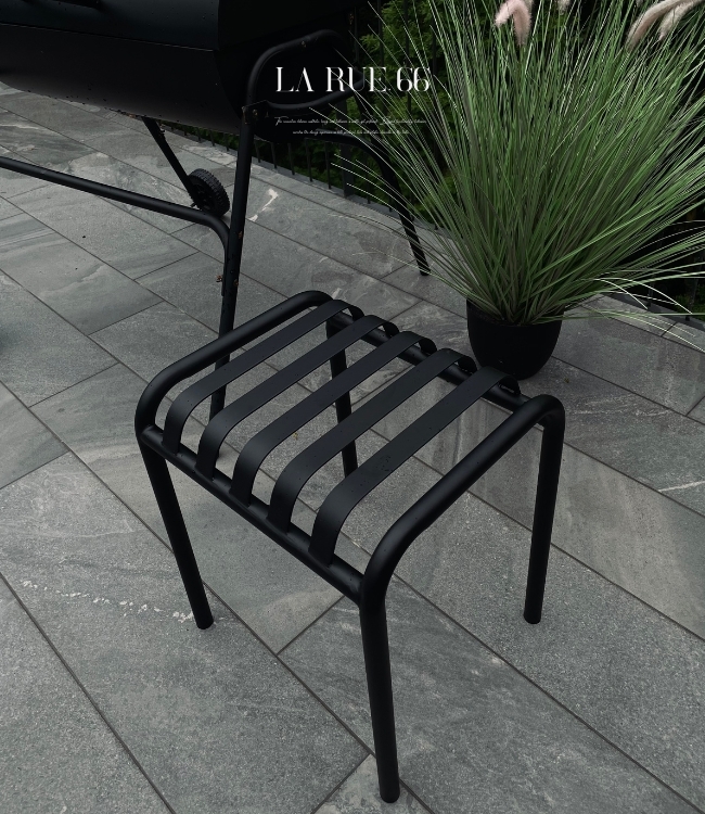 經典美式霧黑鐵椅凳;以符合人體工程學的流線設計,選用高品質鐵件工藝,耐腐蝕且穩固;椅面條狀簍空的設計,讓乘坐者舒適透氣。