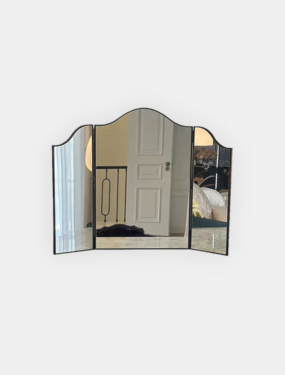 圓拱與削角設計之實木邊框,柔和典雅的輪廓增添古典氣息。適合玄關、臥室或洗手台上方,實用且具裝飾感。