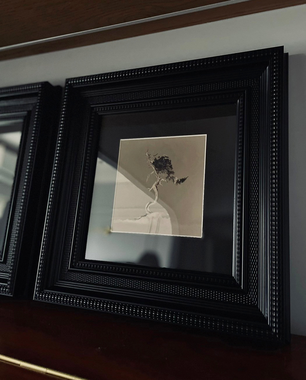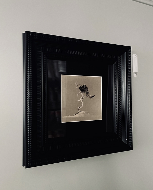 精緻黑色系畫框,搭配極簡風格的低飽和度畫作;