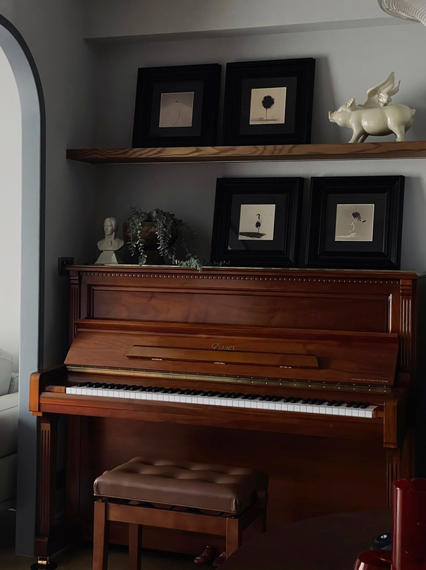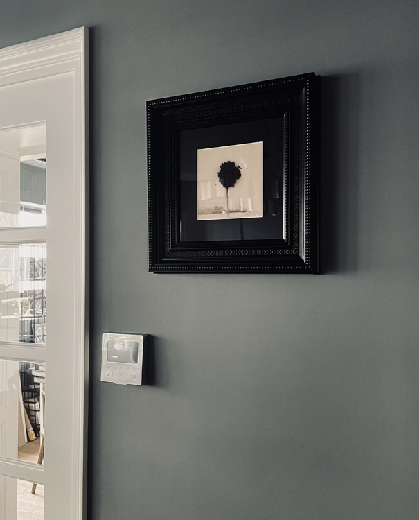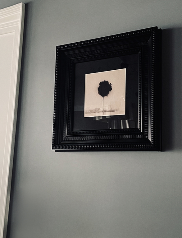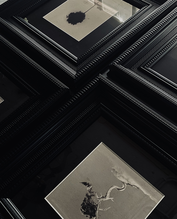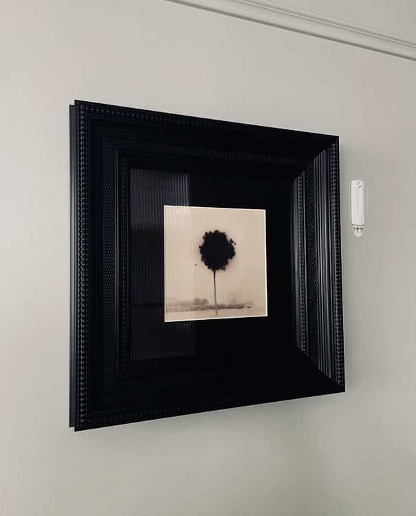 精緻黑色系畫框,搭配極簡風格的低飽和度畫作;