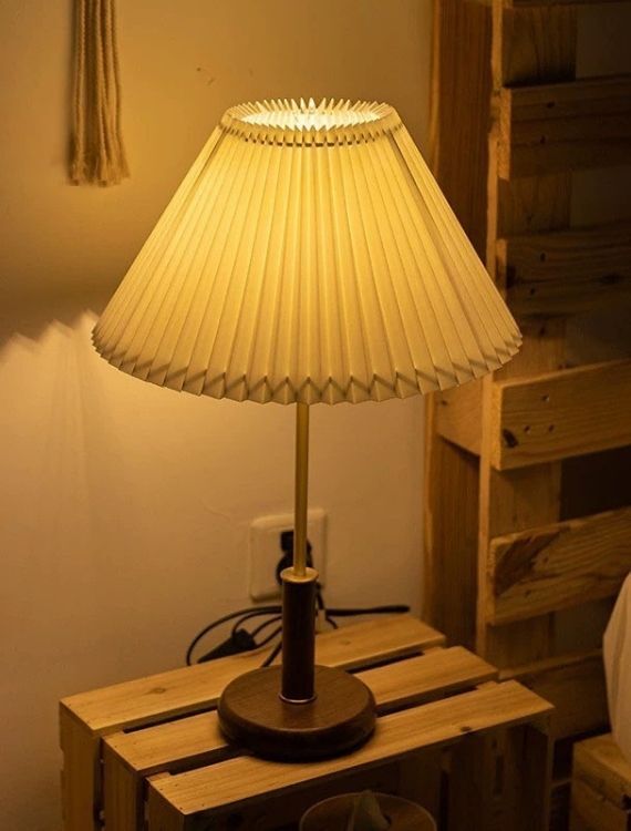 以經典布藝摺紋燈罩搭配黃銅與胡桃木元素,展現優雅懷舊氣息。柔和的燈光透過細膩布料散發溫潤光感,營造舒適而安靜的氛圍。黃銅燈桿與實木底座相互呼應,細節精緻耐看。支援E27燈頭,具三段色溫切換功能,可依情境調整光線,完美融入臥室、客廳或閱讀角落。