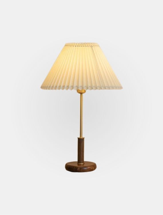 · 以經典布藝摺紋燈罩搭配黃銅與胡桃木元素,展現優雅懷舊氣息