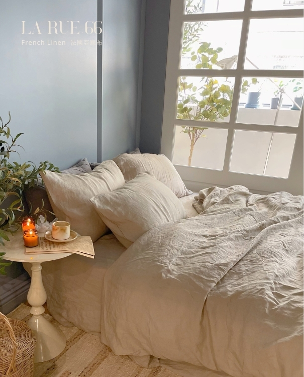 · 隨著時間推移,亞麻布料會越洗越柔軟,成為床鋪中具質感與溫暖的存在