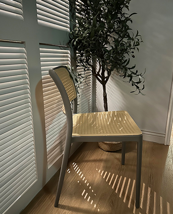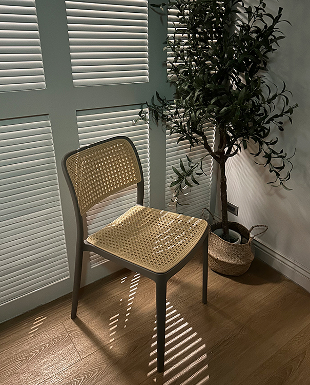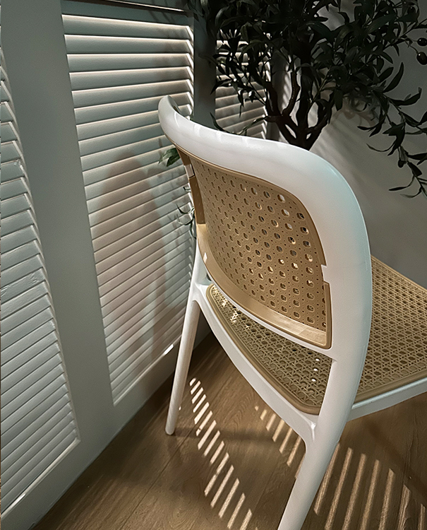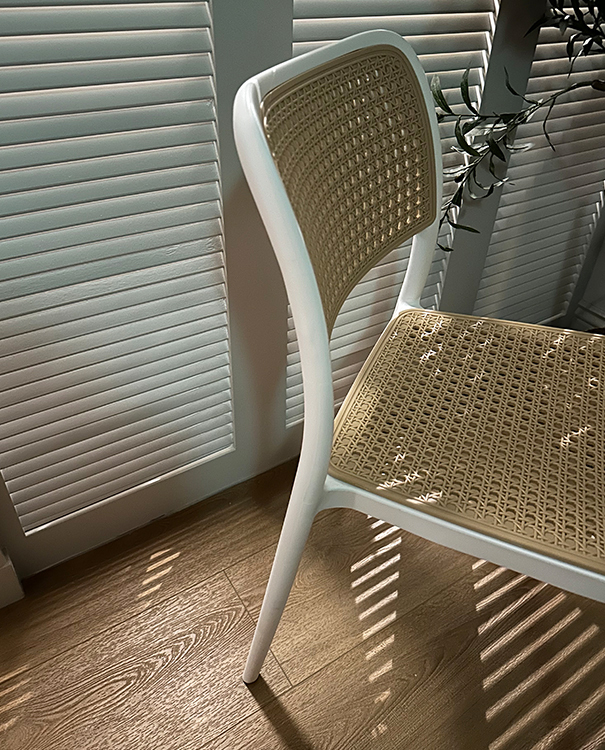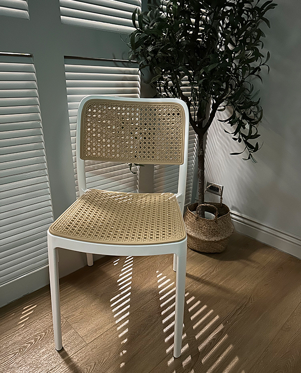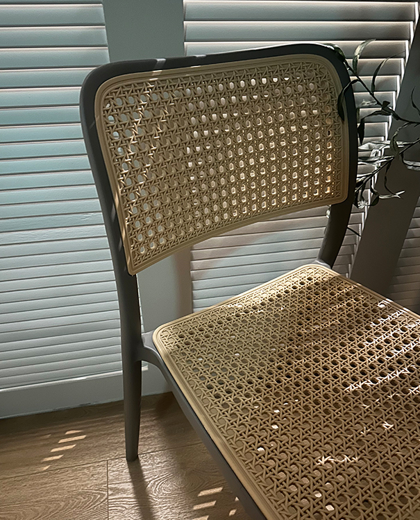精緻藤編造型設計,搭配纖細優雅的椅腳骨架