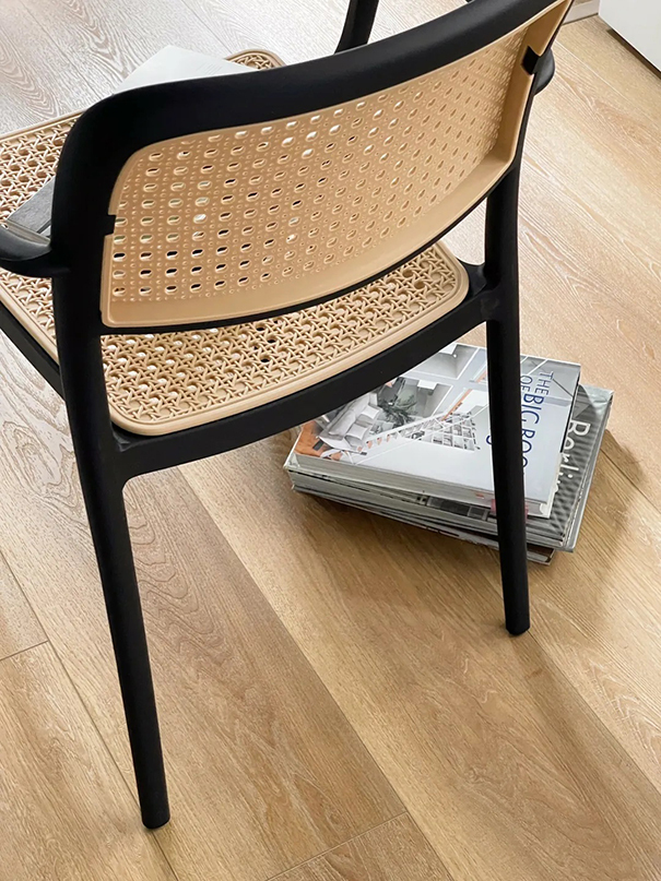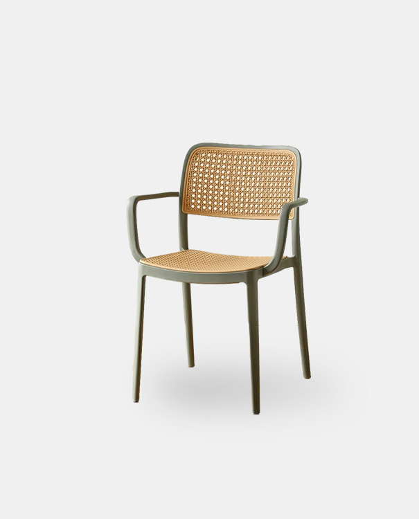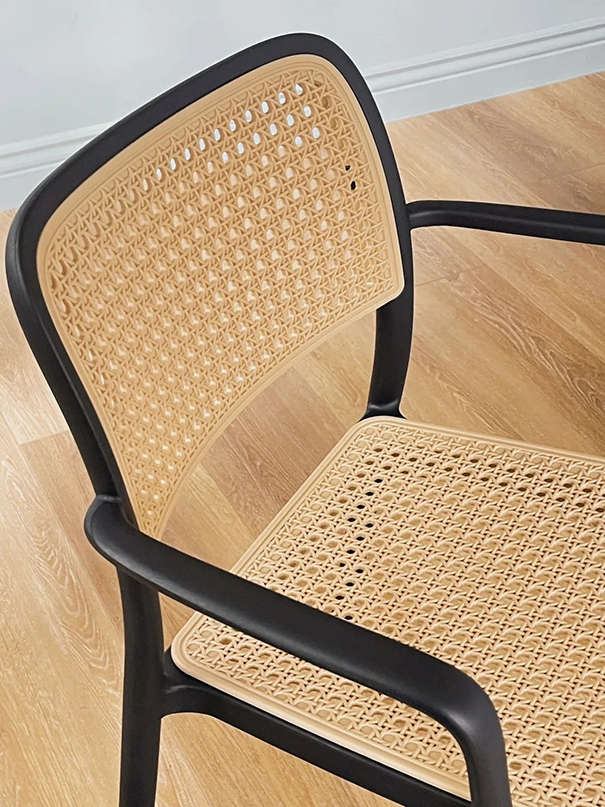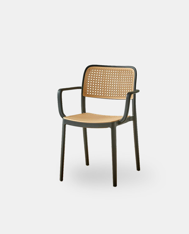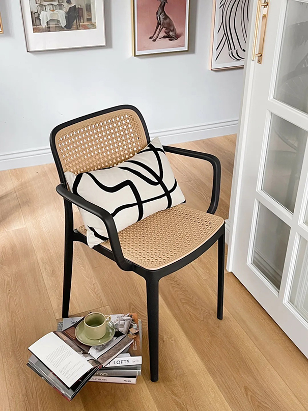 精緻藤編造型設計,搭配纖細優雅的椅腳骨架