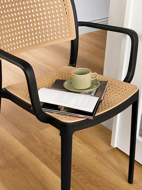 · 扶手式餐椅設計,貼合背部曲線,適合久坐。