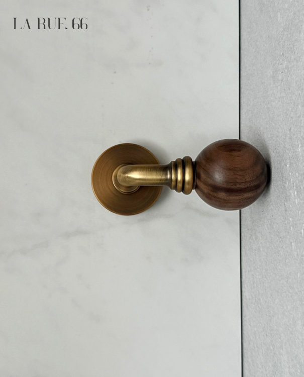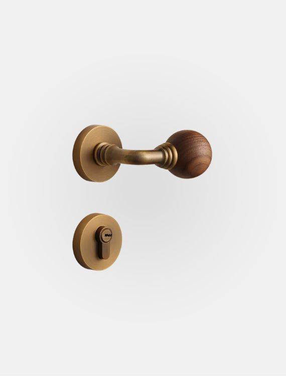 · 古銅與木質結合的復古門鎖,展現工藝美感