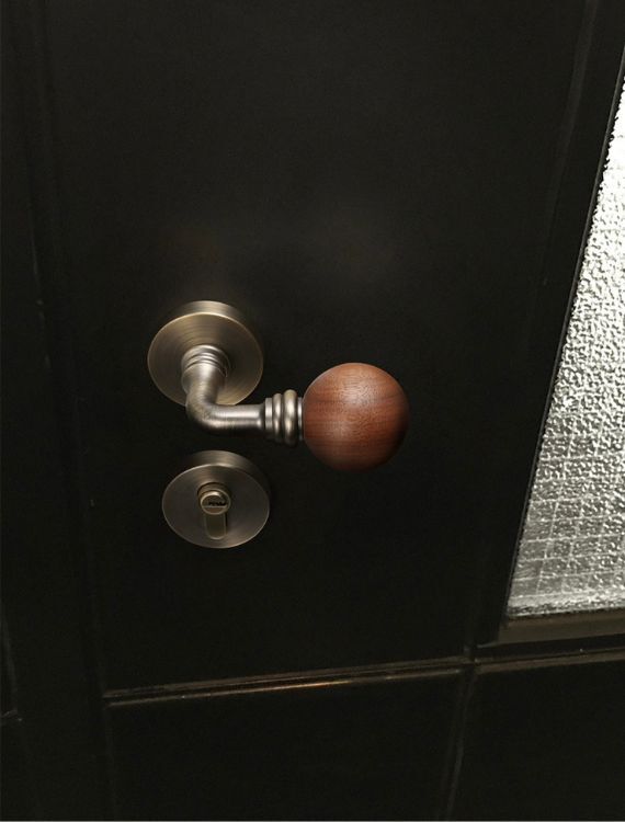 · 古銅與木質結合的復古門鎖,展現工藝美感