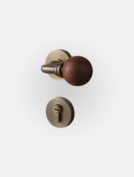 古銅與木質結合的復古門鎖,展現工藝美感,適合懷舊美式風格或日系空間使用。