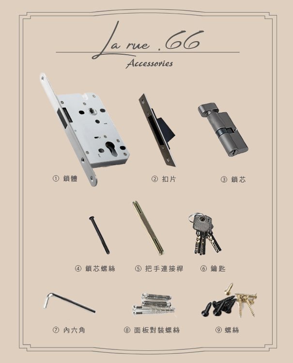 · 靜音鎖 : 不鏽鋼面板,降躁鎖舌設計,開合更加順暢無聲,適合用於臥房或一般室內門