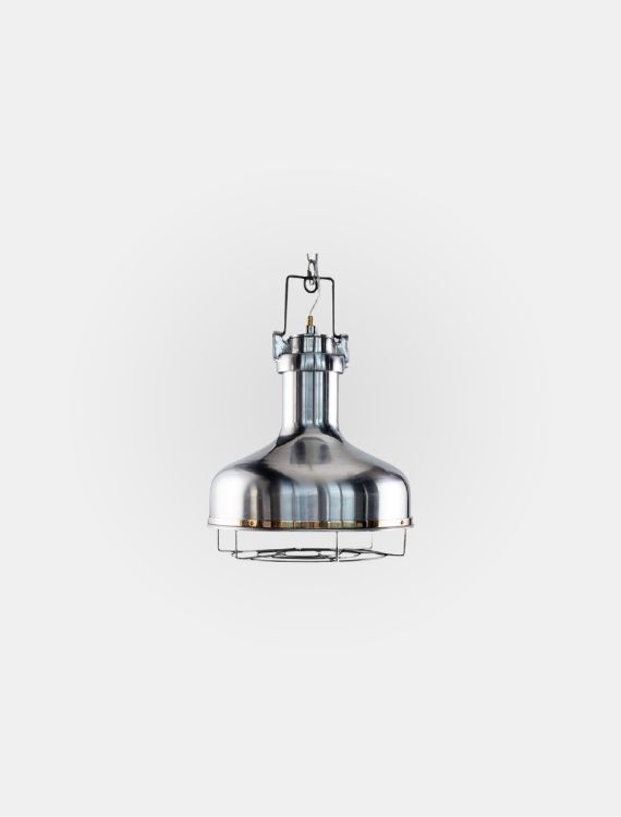 拋光金屬材質打造鮮明的工業風格,鎖扣、懸掛勾與底部護網設計展現強烈的結構感。適合用於餐廳中島、咖啡廳、展示空間等強調風格的場域。實用與視覺效果兼具,為空間注入粗獷率性的設計力量。