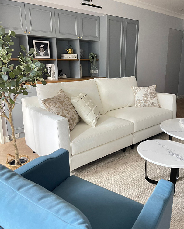 天然象牙白的羊毛地毯具有微妙的風格和細節,現代且耐用。