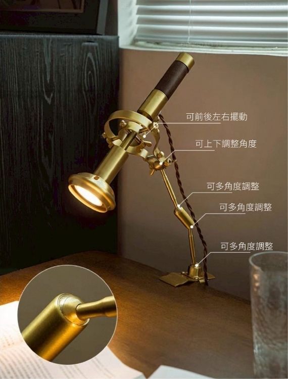 · 夾式底座設計節省桌面空間,穩固且靈活,適合書房、工作室或復古風格空間使用