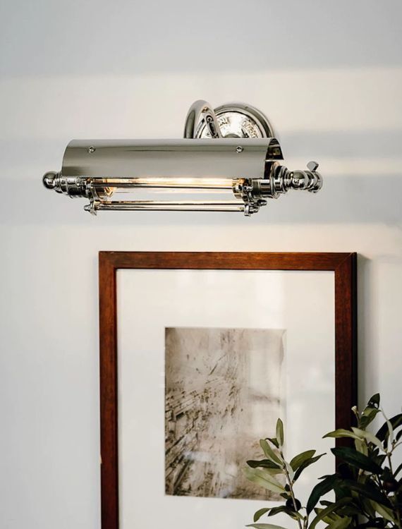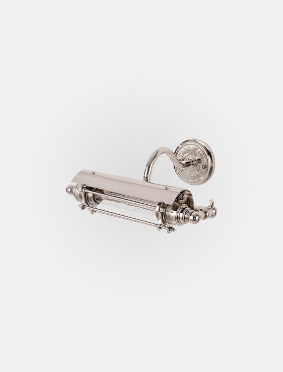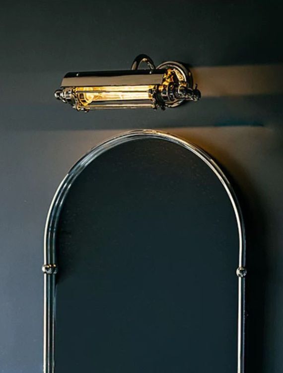 靈感來自19世紀之工業設備,展現強烈工業機械風格。拱形支架與細膩轉軸細節,展現精密儀器之視覺張力。復古及現代空間皆能完美融合,是裝飾與機能兼具的壁面焦點。可作為浴室鏡前燈、畫作燈或走道燈,兼具實用照明與造型點綴功能。
