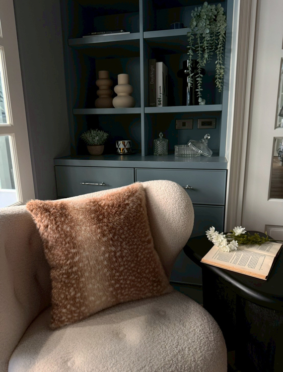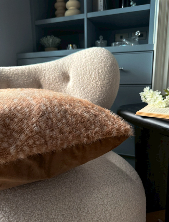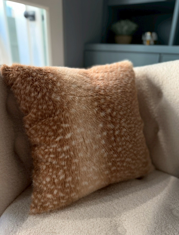 仿梅花鹿的皮草設計,柔軟細膩的觸感,溫暖的大地色調增添自然氣息。適合擺放於沙發或床鋪,提升居家舒適感與奢華氛圍。