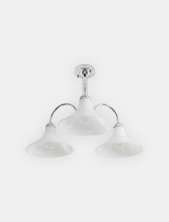 · 燈罩以柔和白色玻璃打造,曲線造型如盛開花瓣,增添一絲柔美感