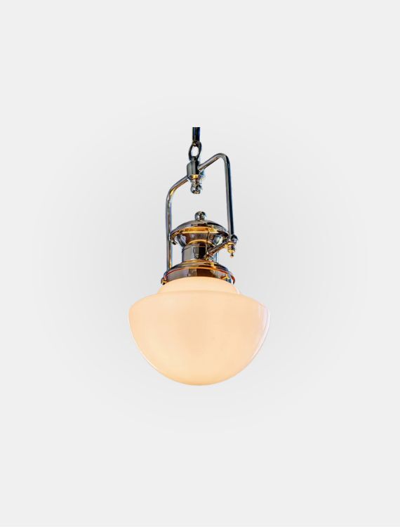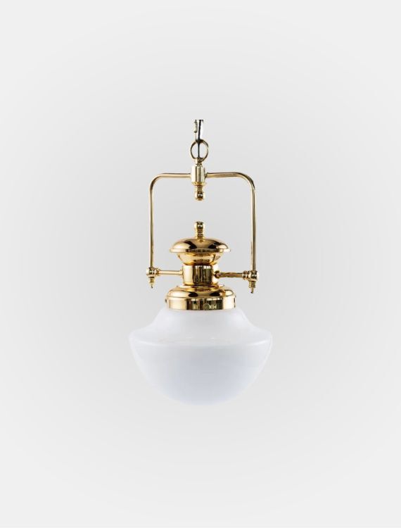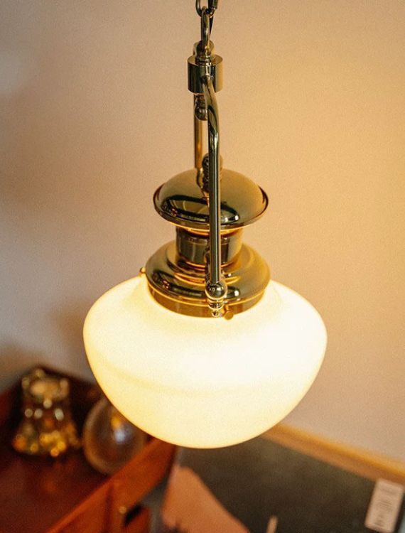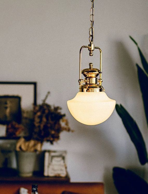 · 以船艙照明為靈感,融合復古工業與簡約線條設計,搭配鍍金屬燈座與厚實玻璃罩