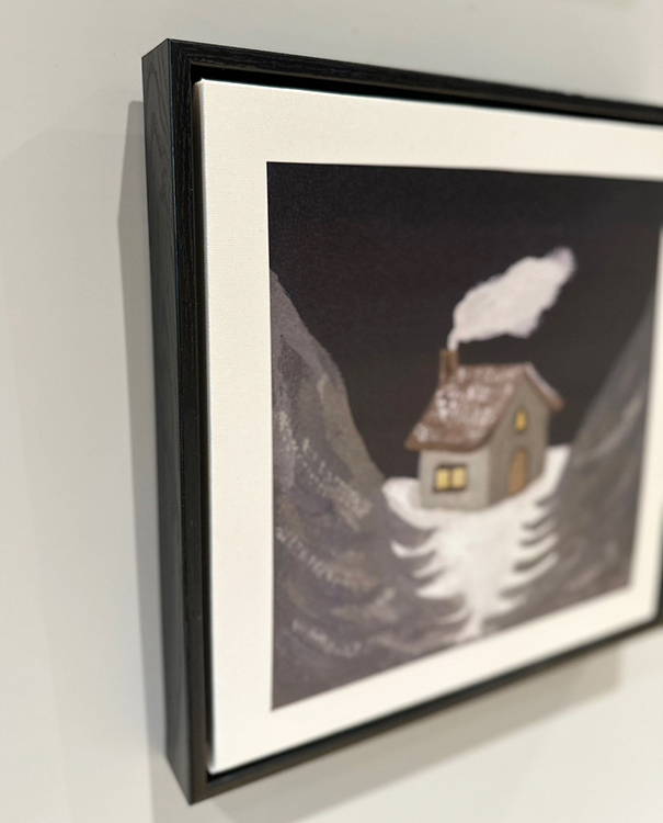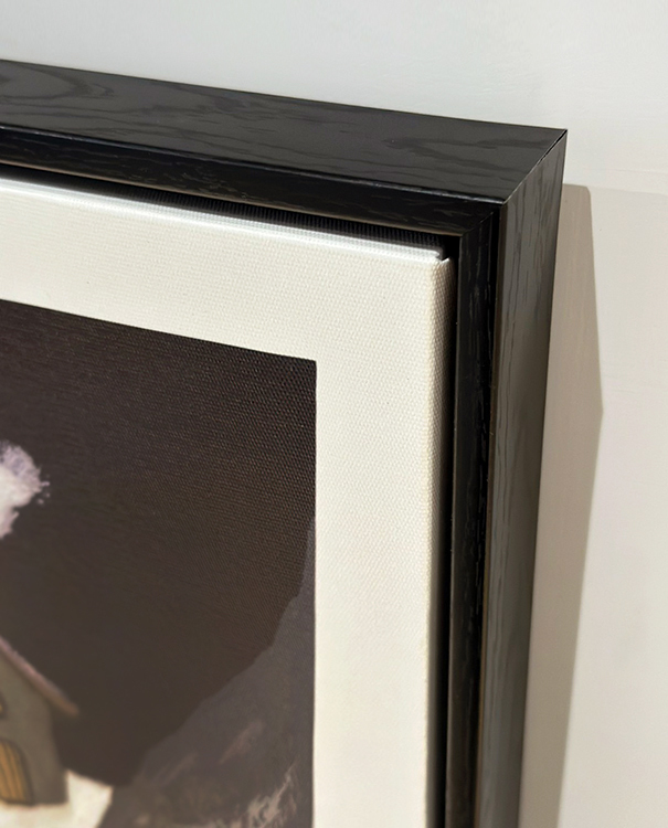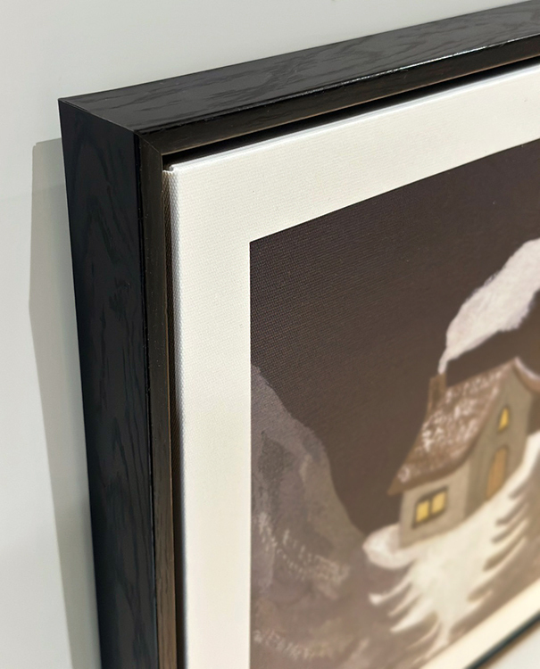 百搭黑色木紋畫框,搭配細緻的真實油畫布插畫