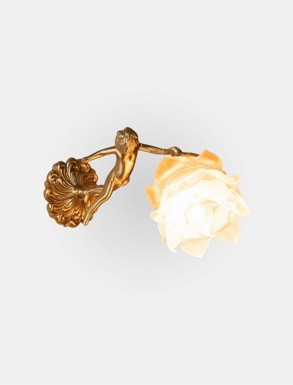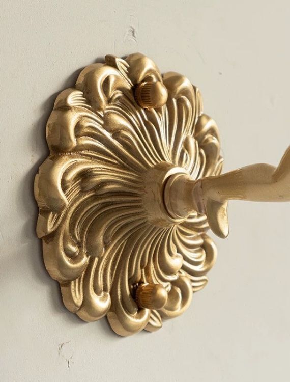 這款壁燈以精緻天使雕塑結合花形玻璃燈罩,展現濃厚的歐式古典風格。金色雕刻細節細膩生動,搭配柔和透光玻璃,散發溫暖優雅的光影效果。充滿藝術感與浪漫氛圍,適合玄關、臥室或裝飾牆面,為空間注入復古華麗的視覺焦點。