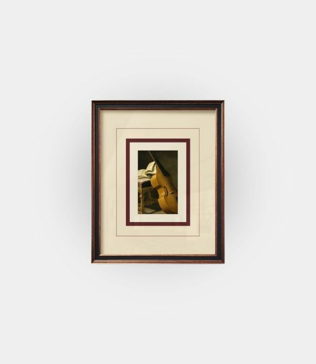 精緻黑色做舊木紋框,古典風格小提琴畫作;使空間以畫作做為情感的溝通,低調緩和地感受脈動。